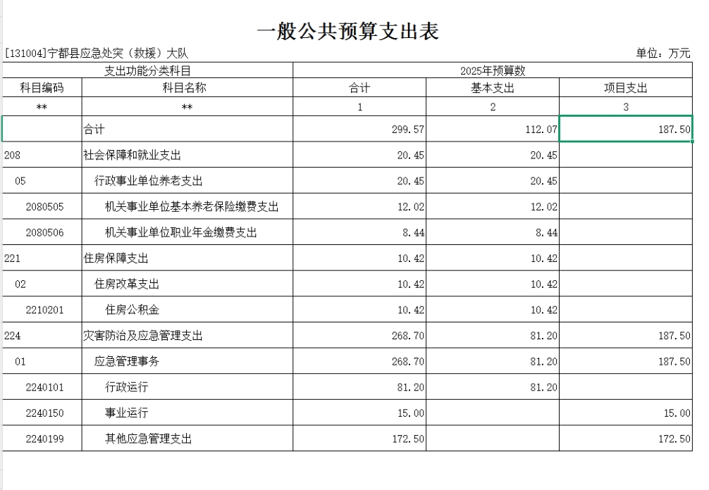 2025单位支出预算总额为 299.57 万元,较上年预算安排